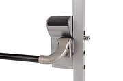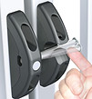 A Locinox standard lock that is suitable for gates that are part of an emergency exit route by utilizing a push pad for ease of operation when carrying parcels or other items requiring both hands.